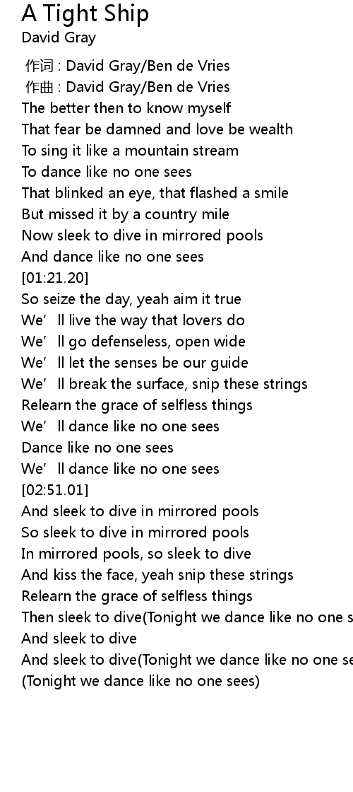 | [00:49.17] | To dance like no one sees |