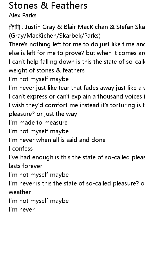 | 歌曲 | Stones & Feathers |