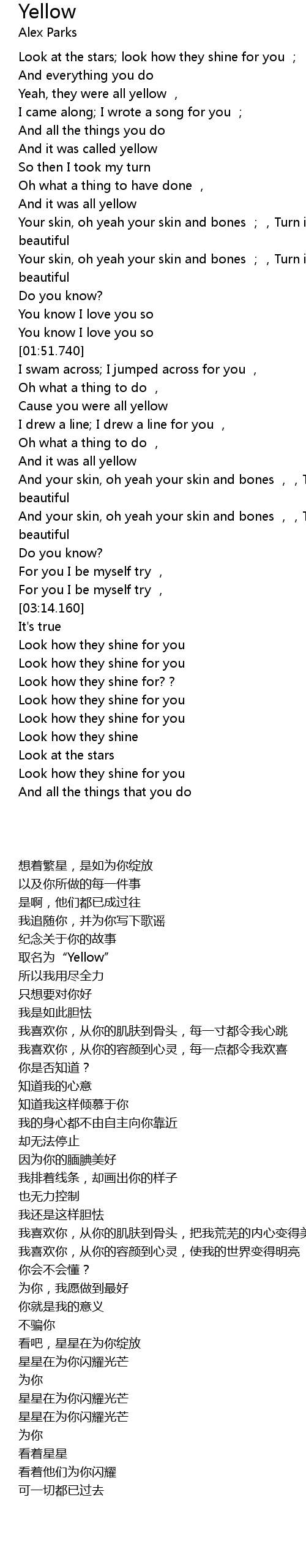 | [00:33.760] | Look at the stars; look how they shine for you ; |