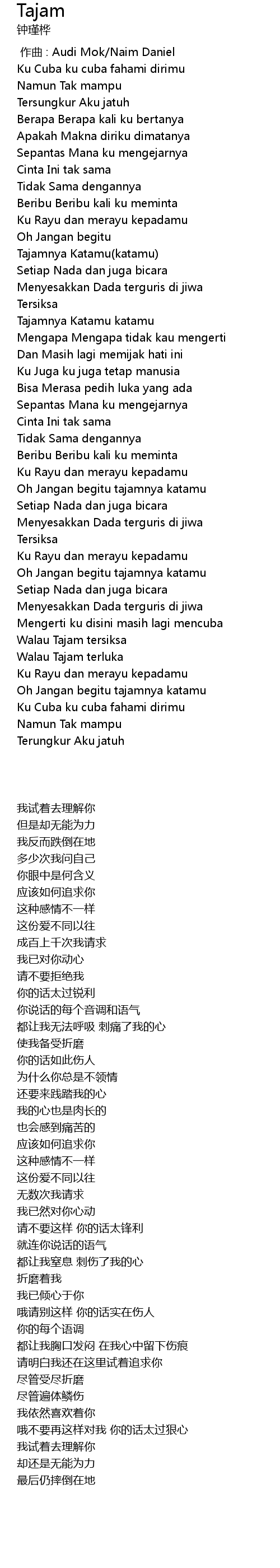 | [00:00.000] | zuò qǔ : Audi Mok Naim Daniel |