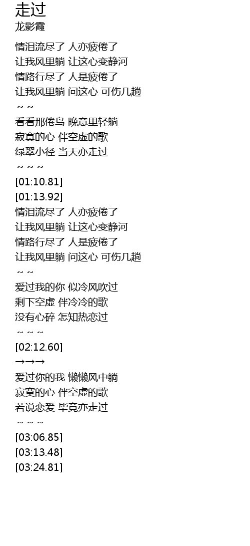 | [01:31.84] | 情路行尽了 人是疲倦了 |