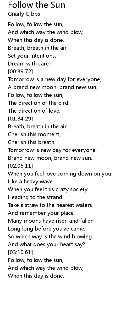 Follow, follow the sun, |