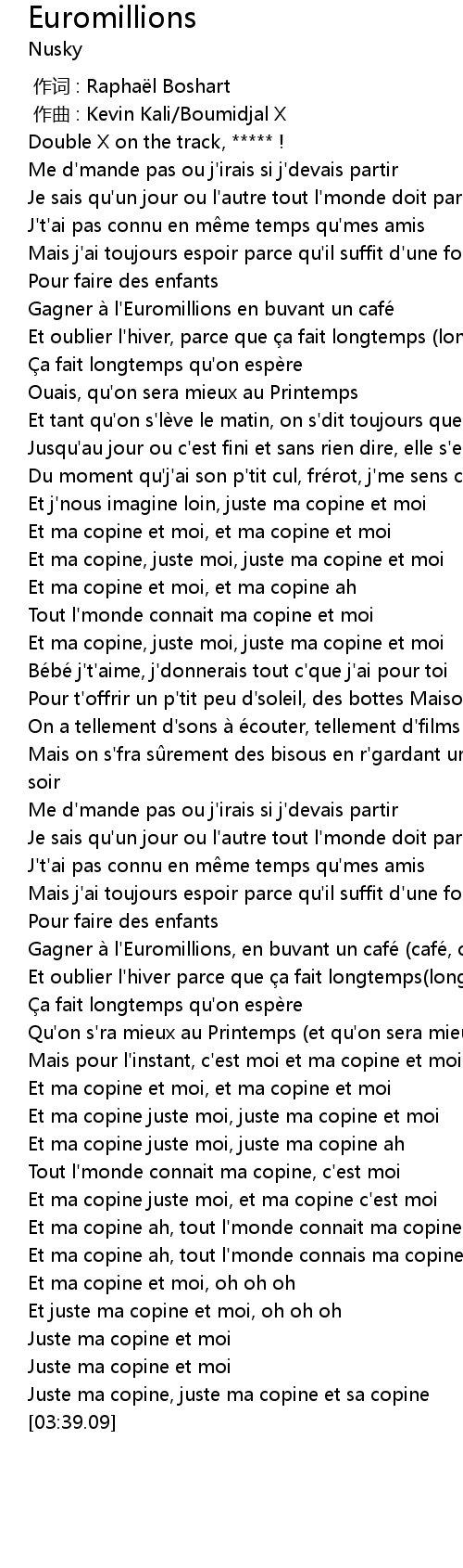 | [02:59.14] | Et ma copine juste moi, juste ma copine ah |