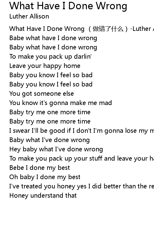 | [00:00.00] | What Have I Done Wrong (做错了什么)-Luther Allison |