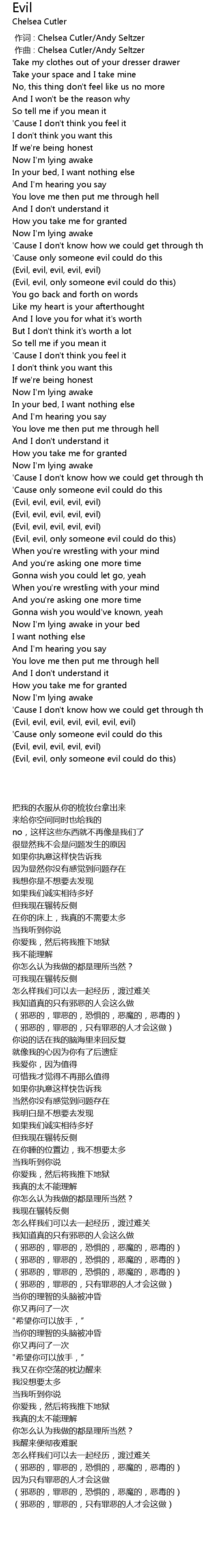 | [02:08.35] | Evil, evil, evil, evil, evil |