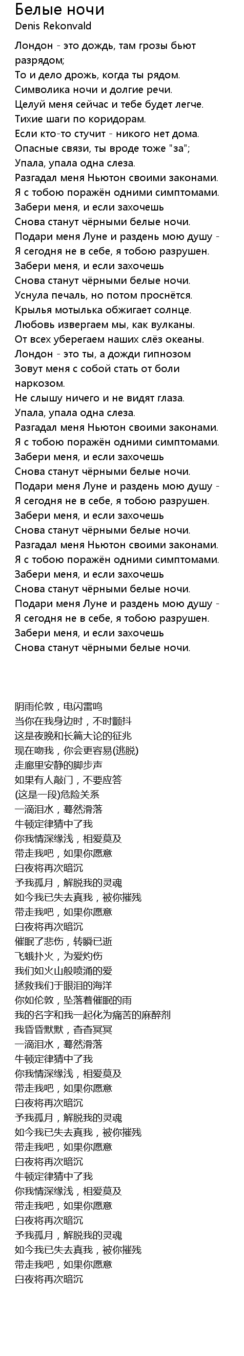 | 歌曲 | Белые ночи |