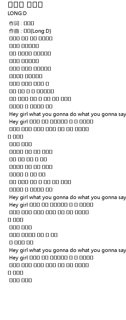 | [02:41.792] | Hey girl what you gonna do what you gonna say 입맞춤보다 더 |