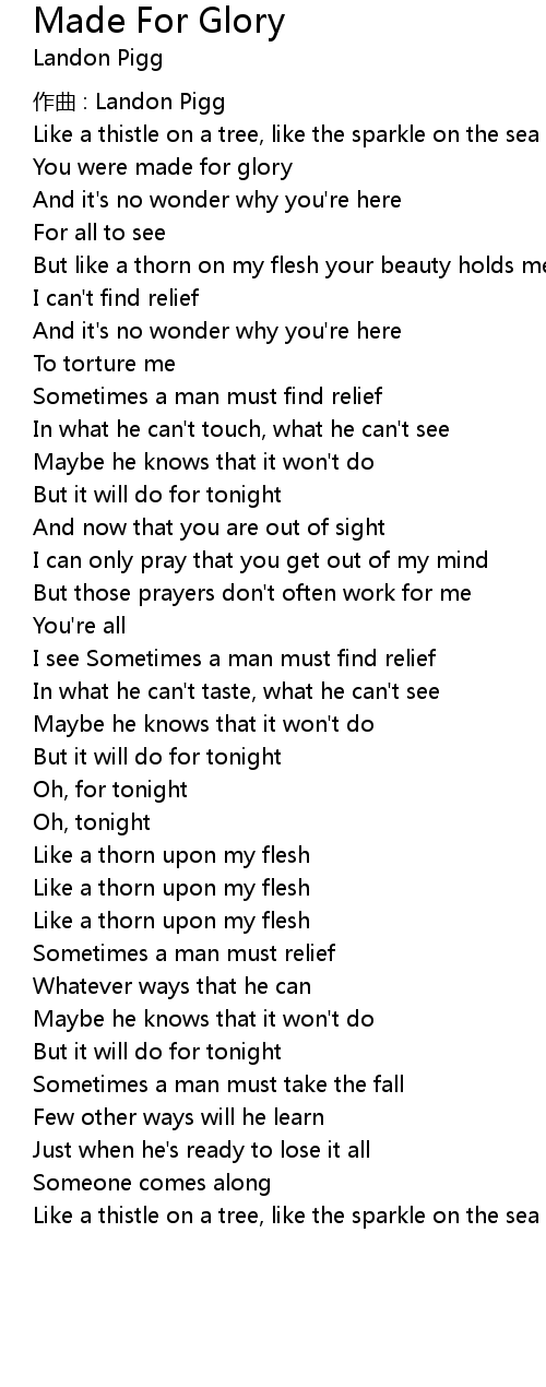| 歌曲 | Made For Glory |