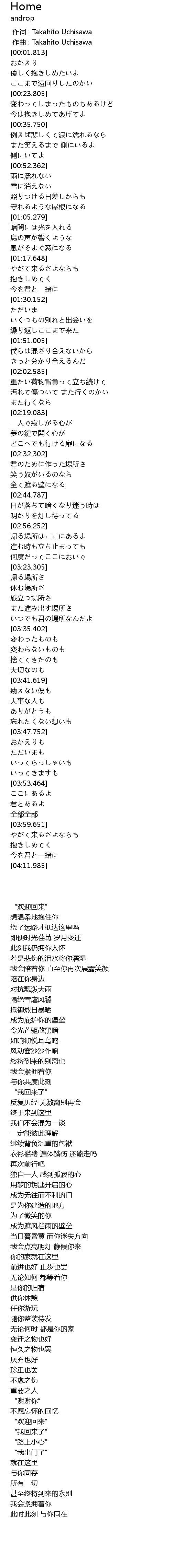 | [00:00.000] | zuo ci : Takahito Uchisawa |