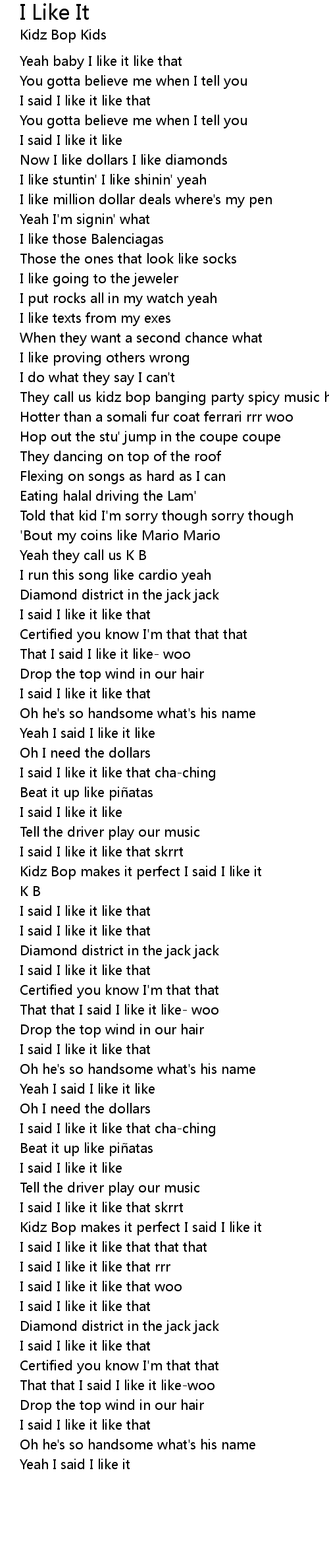 Kidz Bop makes it perfect I said I like it |