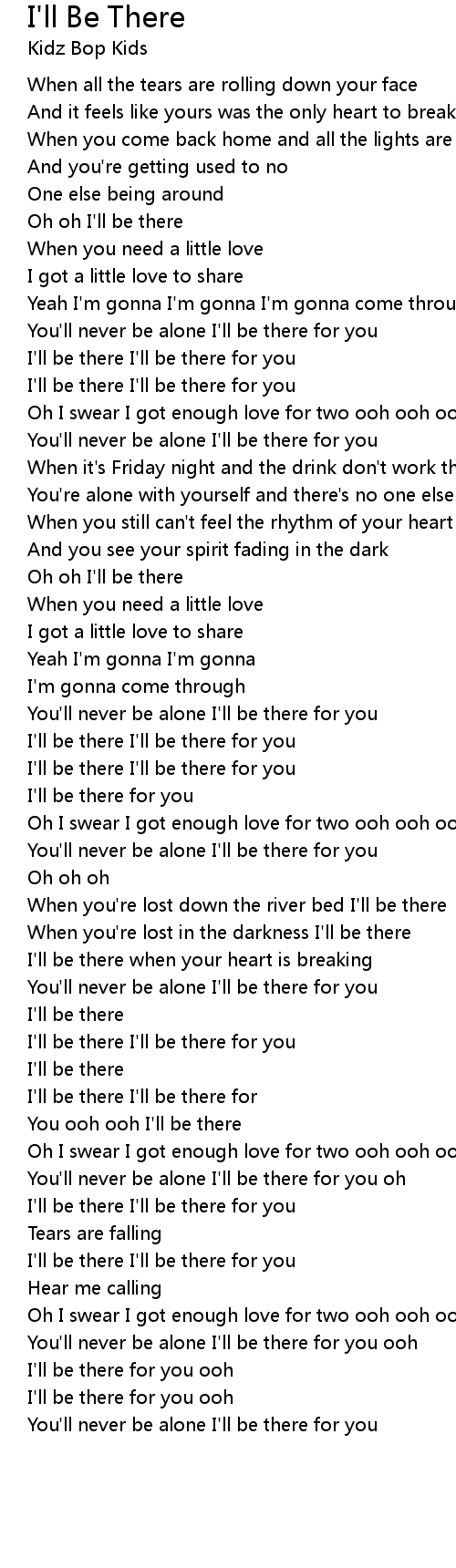 I'll be there I'll be there for |