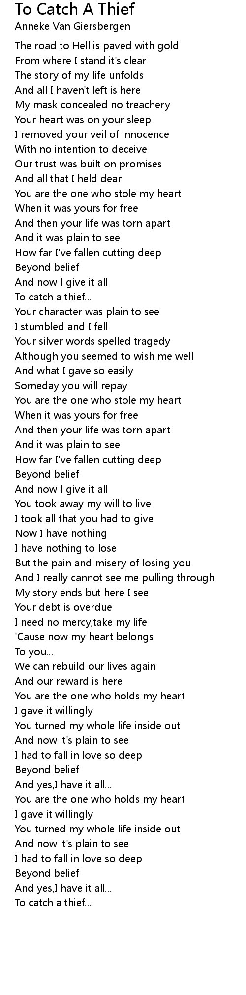 You are the one who stole my heart |