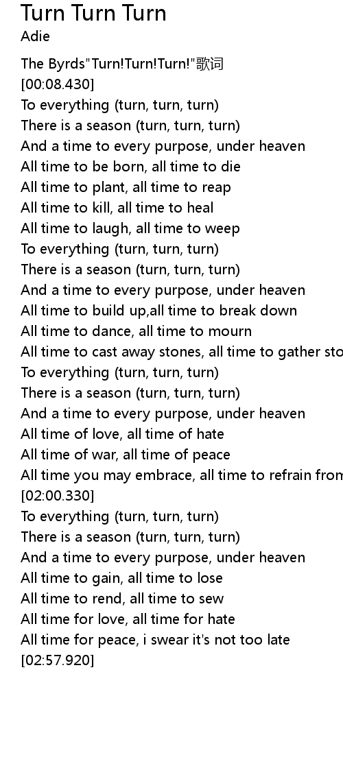 | [00:52.840] | There is a season (turn, turn, turn) |
