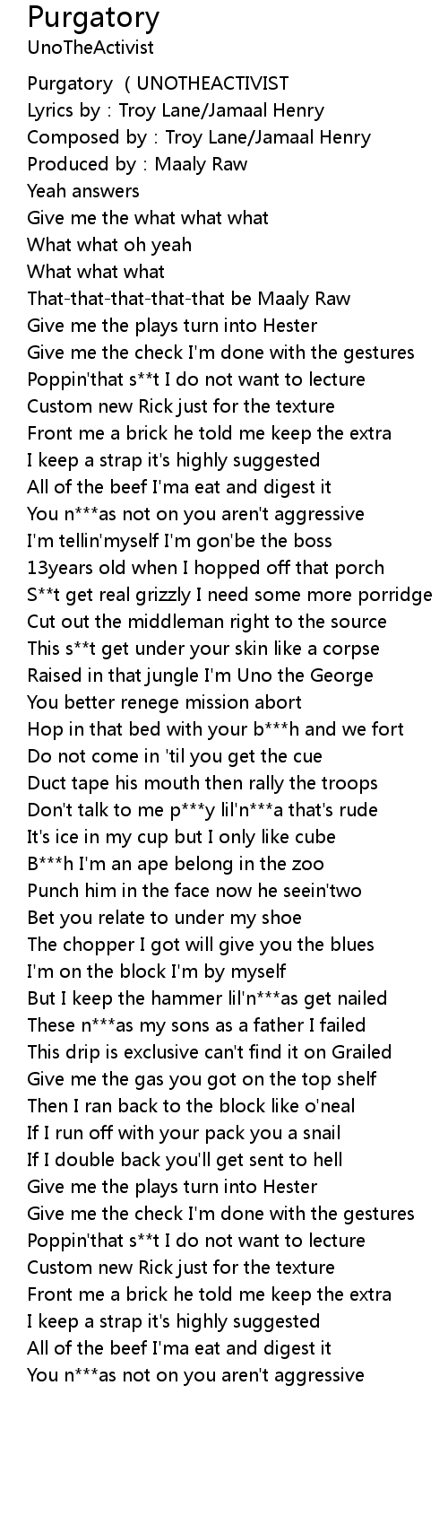 | [00:00.137] | Purgatory UNOTHEACTIVIST |