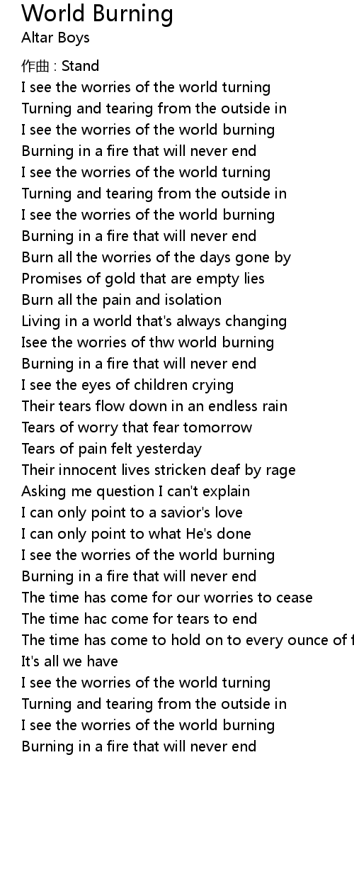 | Isee the worries of thw world burning | |