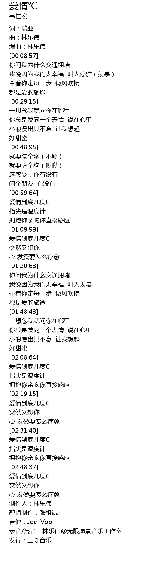 | [03:04.67] | 录音/混音:林乐伟@无限愿景音乐工作室 |
