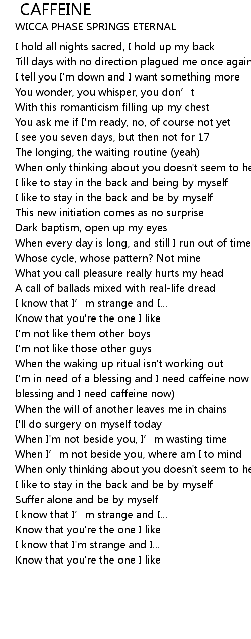 | [02:54.37] | I'm in need of a blessing and I need caffeine now (in need of a blessing and I need caffeine now) |