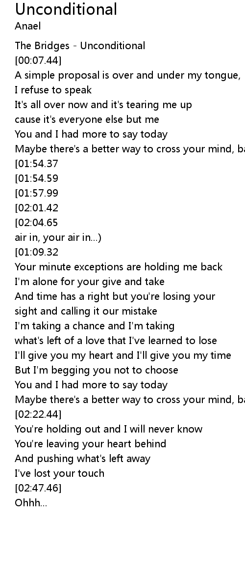 [02:50.94][01:54.59][00:43.84] Please don't go if I'm being unconditional