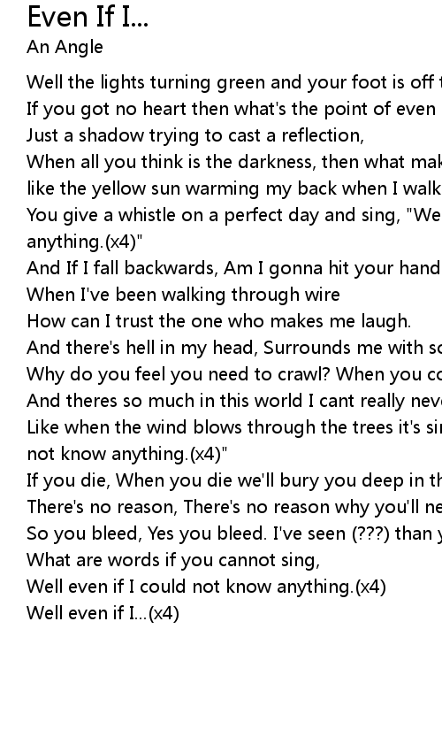 Like when the wind blows through the trees it's singing, "Well even if I could not know anything.(x4)" |