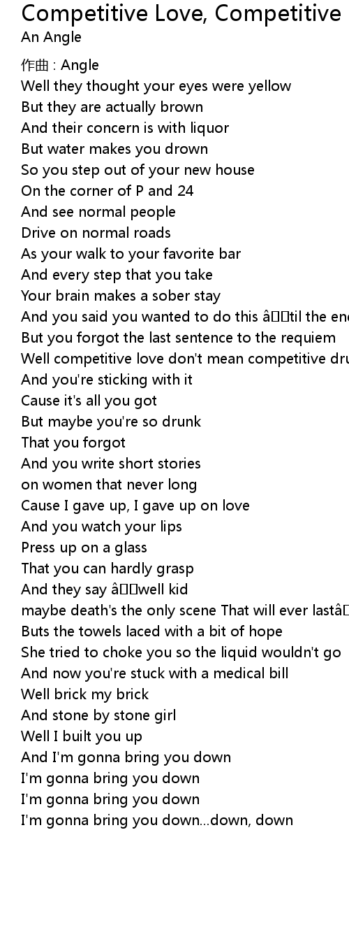 | 歌曲 | Competitive Love, Competitive Drugs |
