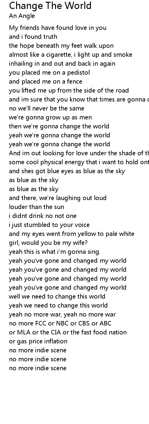 yeah we're gonna change the world |