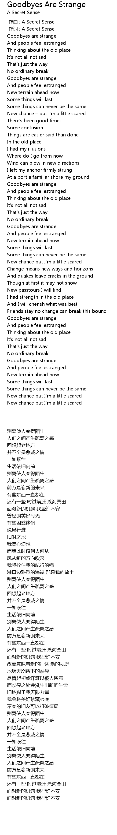 | 歌曲 | Goodbyes Are Strange |