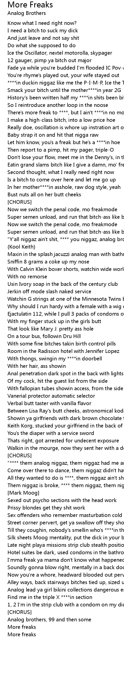 "Y'all niggaz ain't shit, **** you niggaz, analog brothers, **** y'all" |