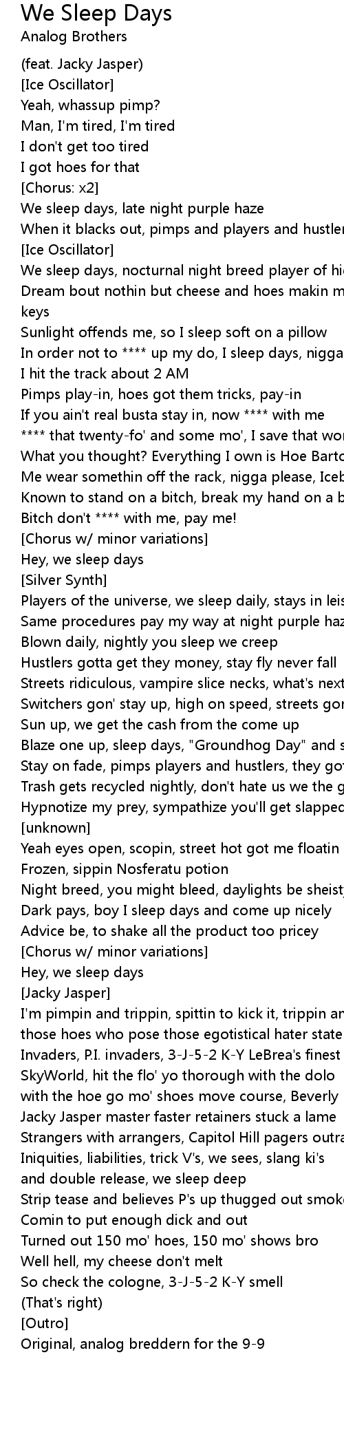 Hey, we sleep days |
