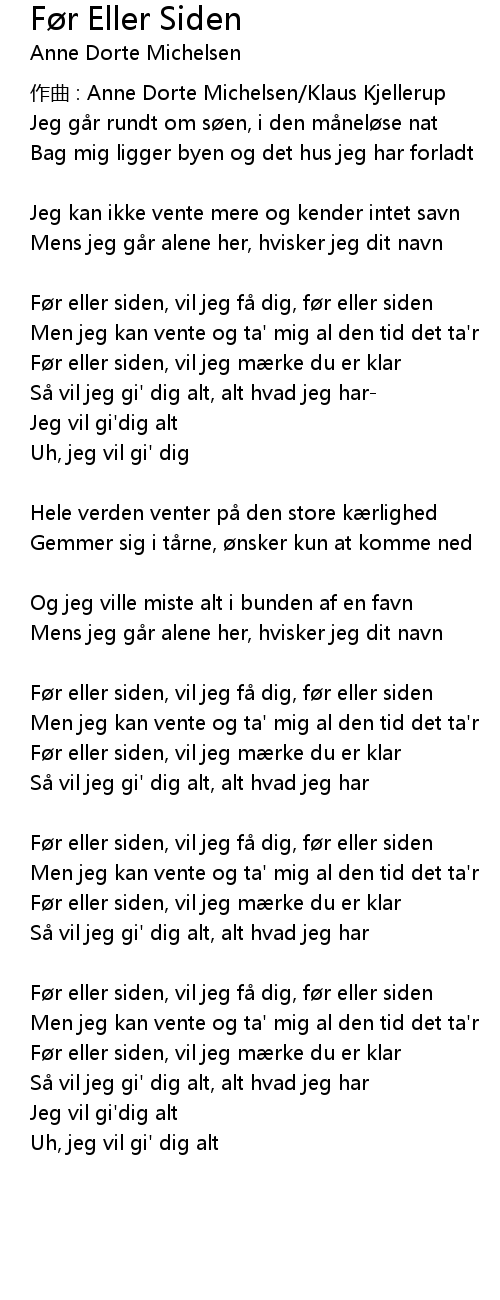 | F r eller siden, vil jeg f dig, f r eller siden | |