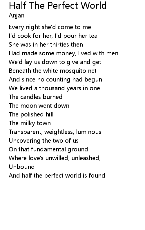 | And half the perfect world is found |
