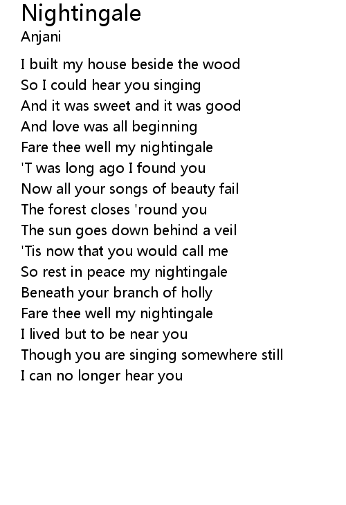 | So rest in peace my nightingale | |