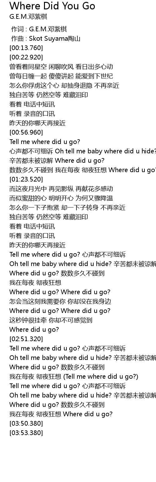 | [03:36.720] | Where did u go? 数数多久不碰到 |