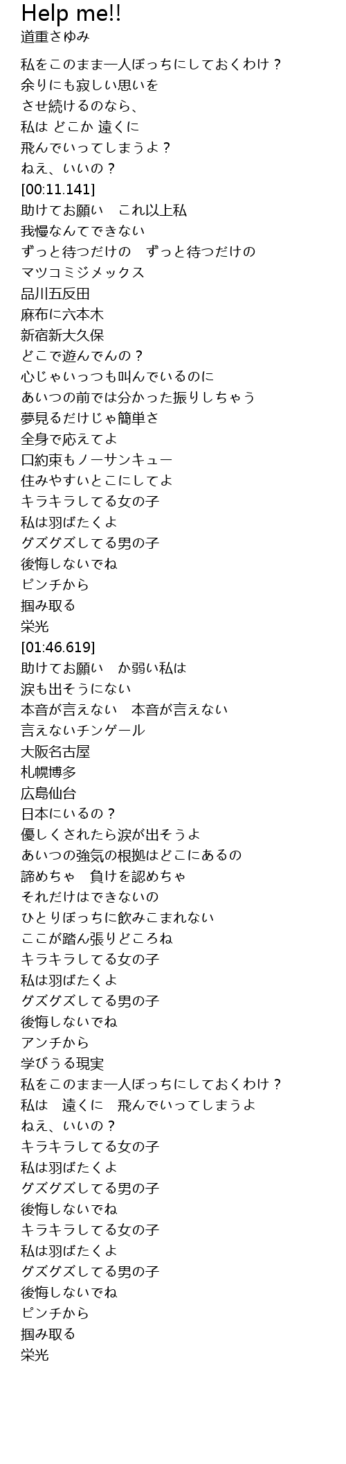 | [00:24.307] | 助けてお願い これ以上私 |