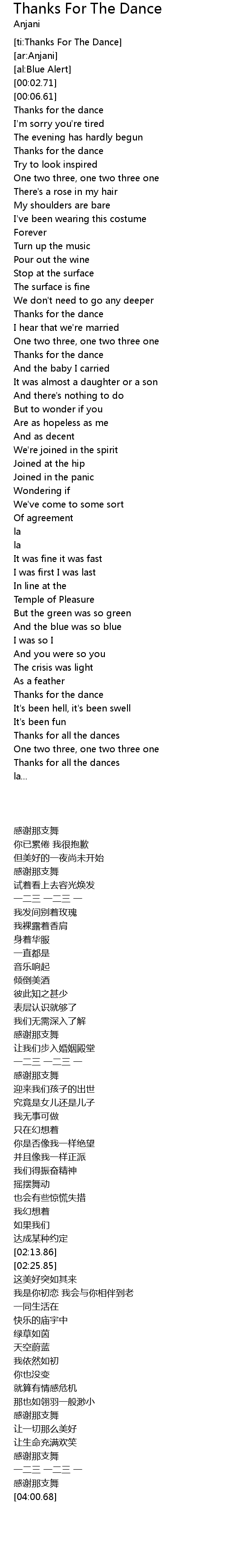 [ti:Thanks For The Dance] |