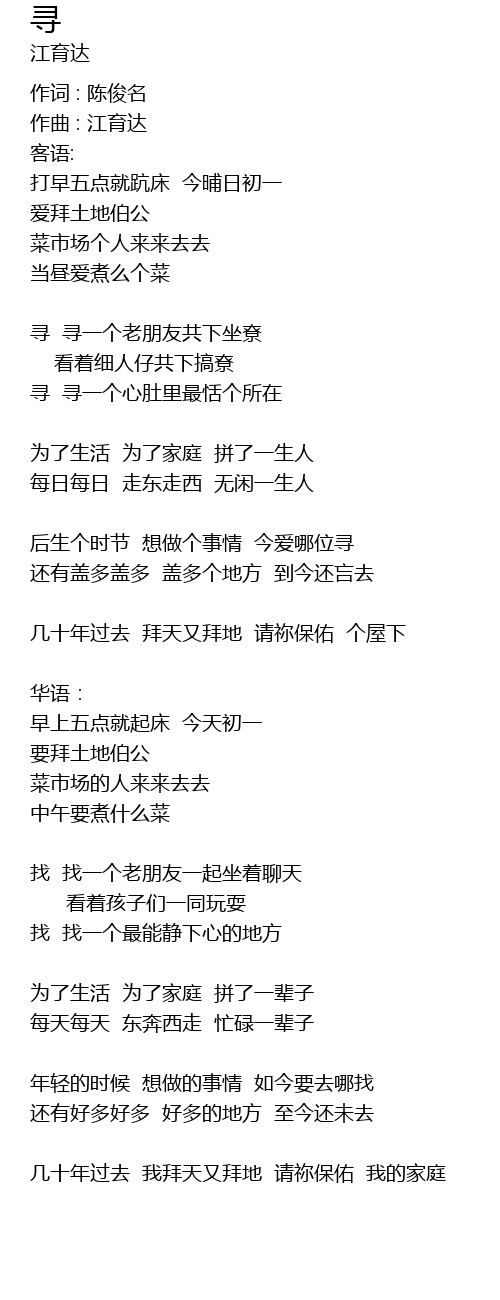 | 几十年过去 拜天又拜地 请祢保佑 个屋下 | |