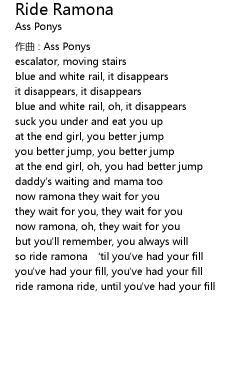 | 歌曲 | Ride Ramona |