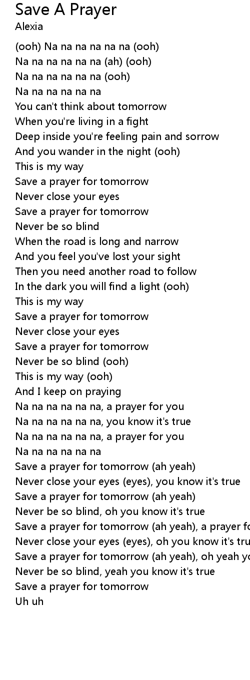 | Save a prayer for tomorrow (ah yeah), a prayer for you | |