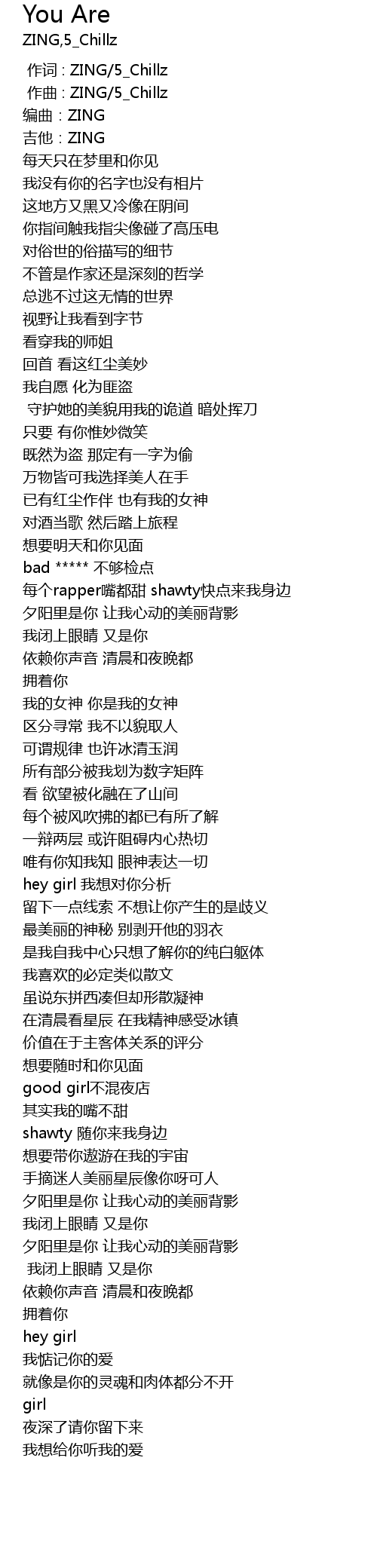 | [00:00.000] | 作词 : ZING/5_Chillz |