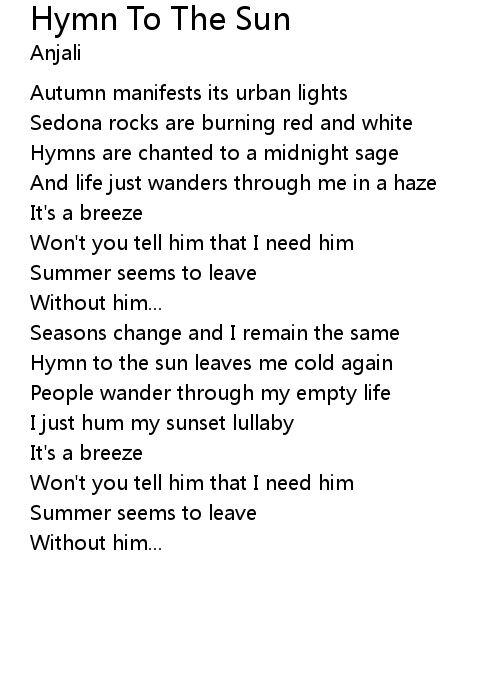 | 歌曲 | Hymn To The Sun |