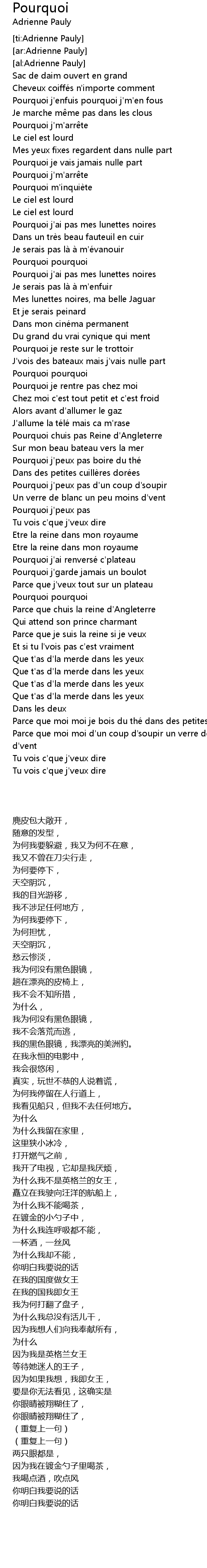 | [00:16.02] | Pourquoi j' enfuis pourquoi j' m' en fous |