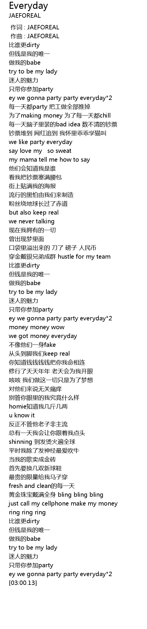 | [02:55.75] | ey we gonna party party everyday*2 |