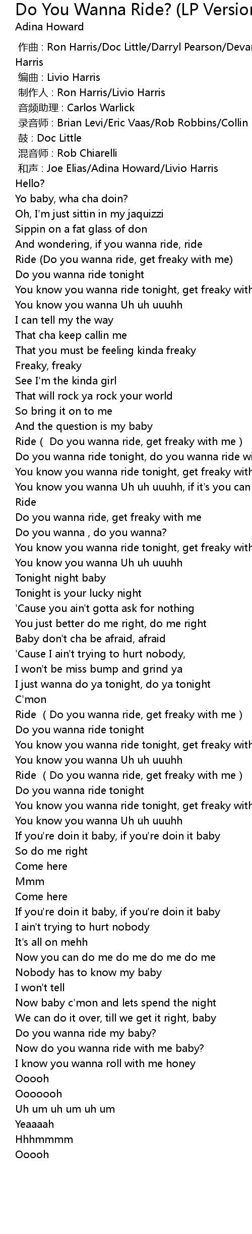 | [02:14.91] | Ride Do you wanna ride, get freaky with me |