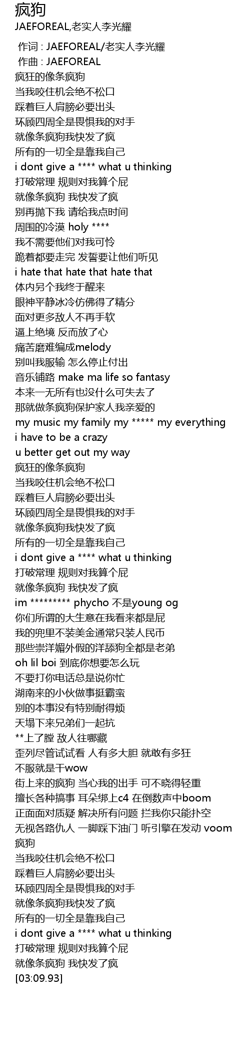 | [03:06.50] | 就像条疯狗 我快发了疯 |