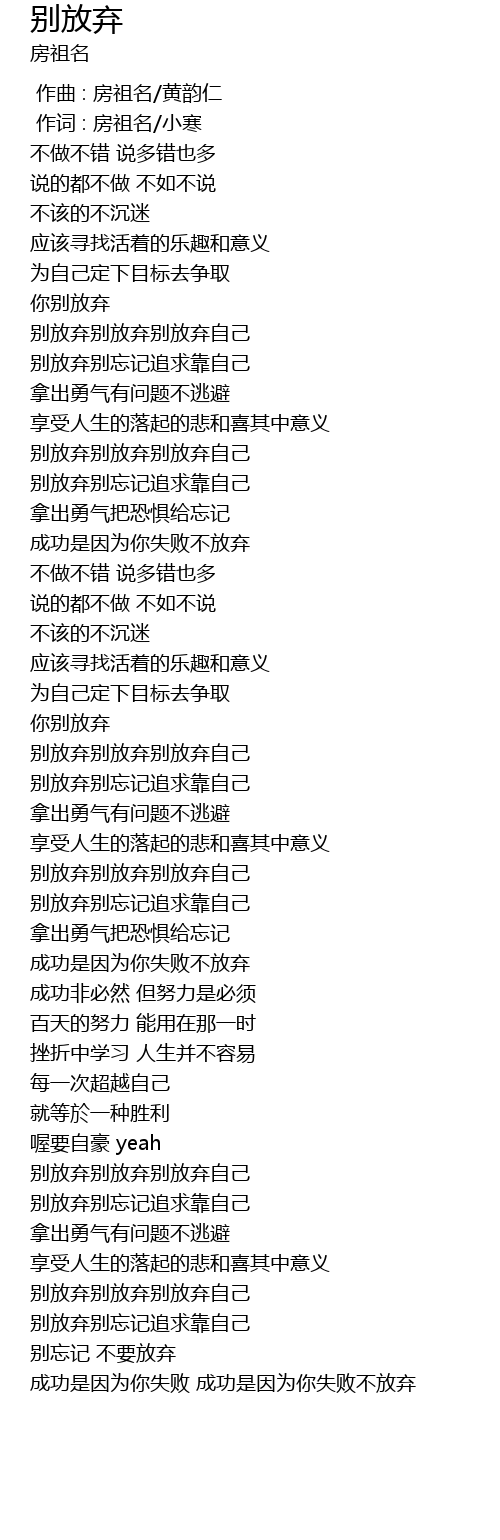 | [03:43.000] | 别放弃别忘记追求靠自己 |