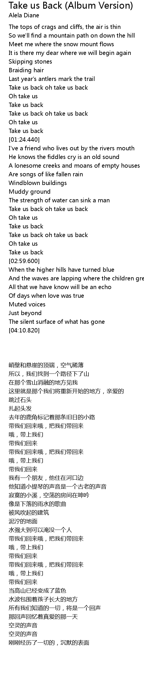 Take us back oh take us back |