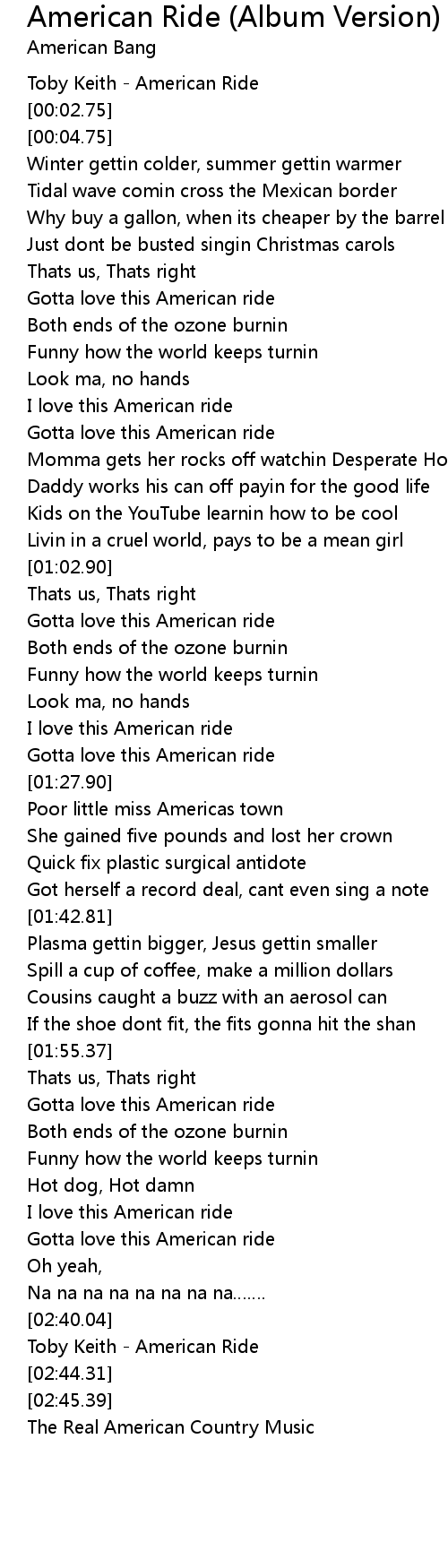 | [02:42.66] | Toby Keith American Ride |