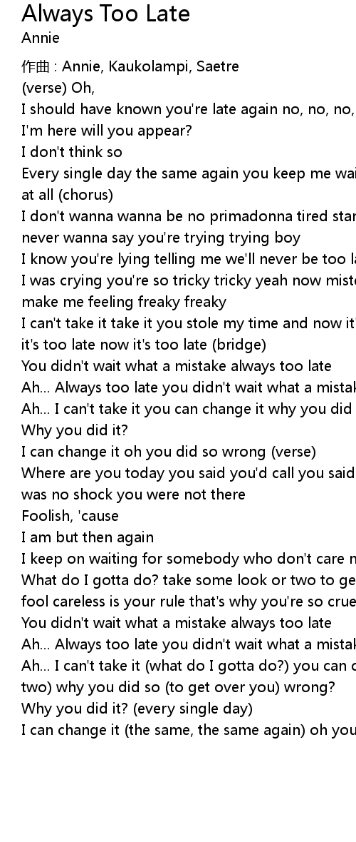 | Ah... Always too late you didn' t wait what a mistake | |