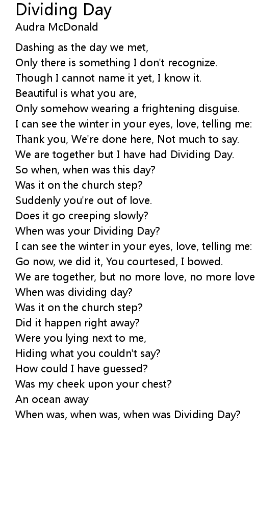 When was, when was, when was Dividing Day? |