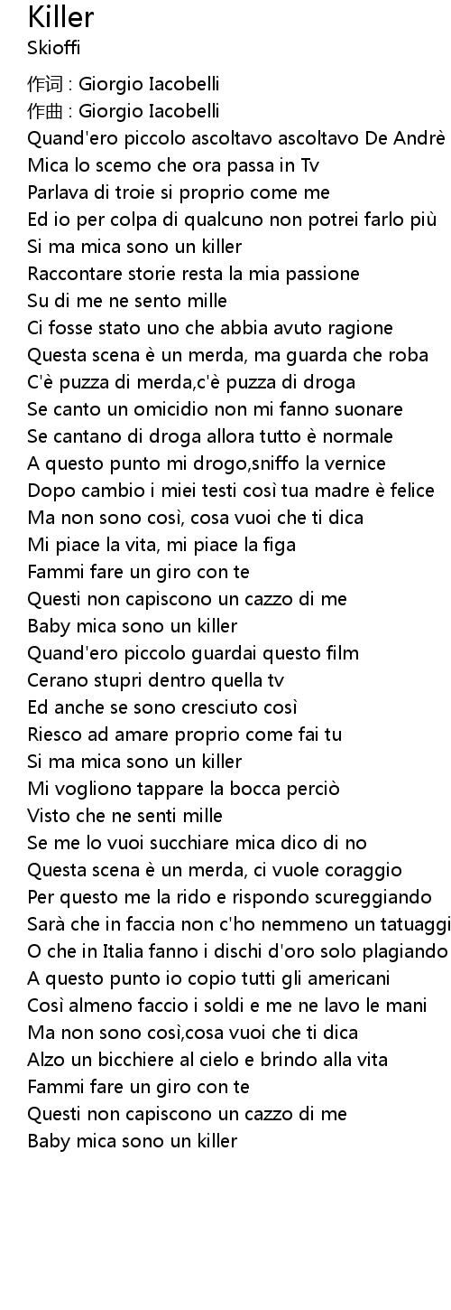 | Se canto un omicidio non mi fanno suonare | |