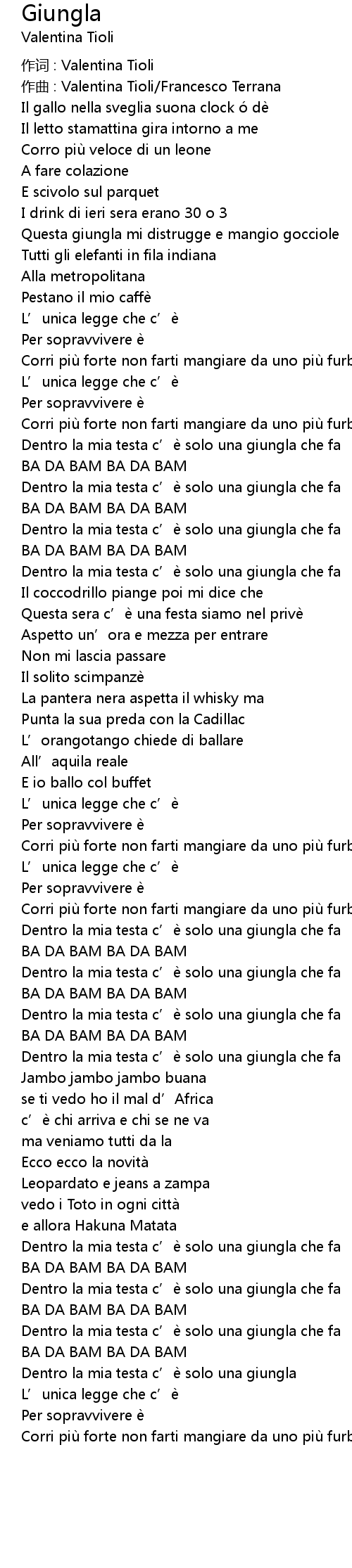 | Dentro la mia testa c'e solo una giungla che fa | |